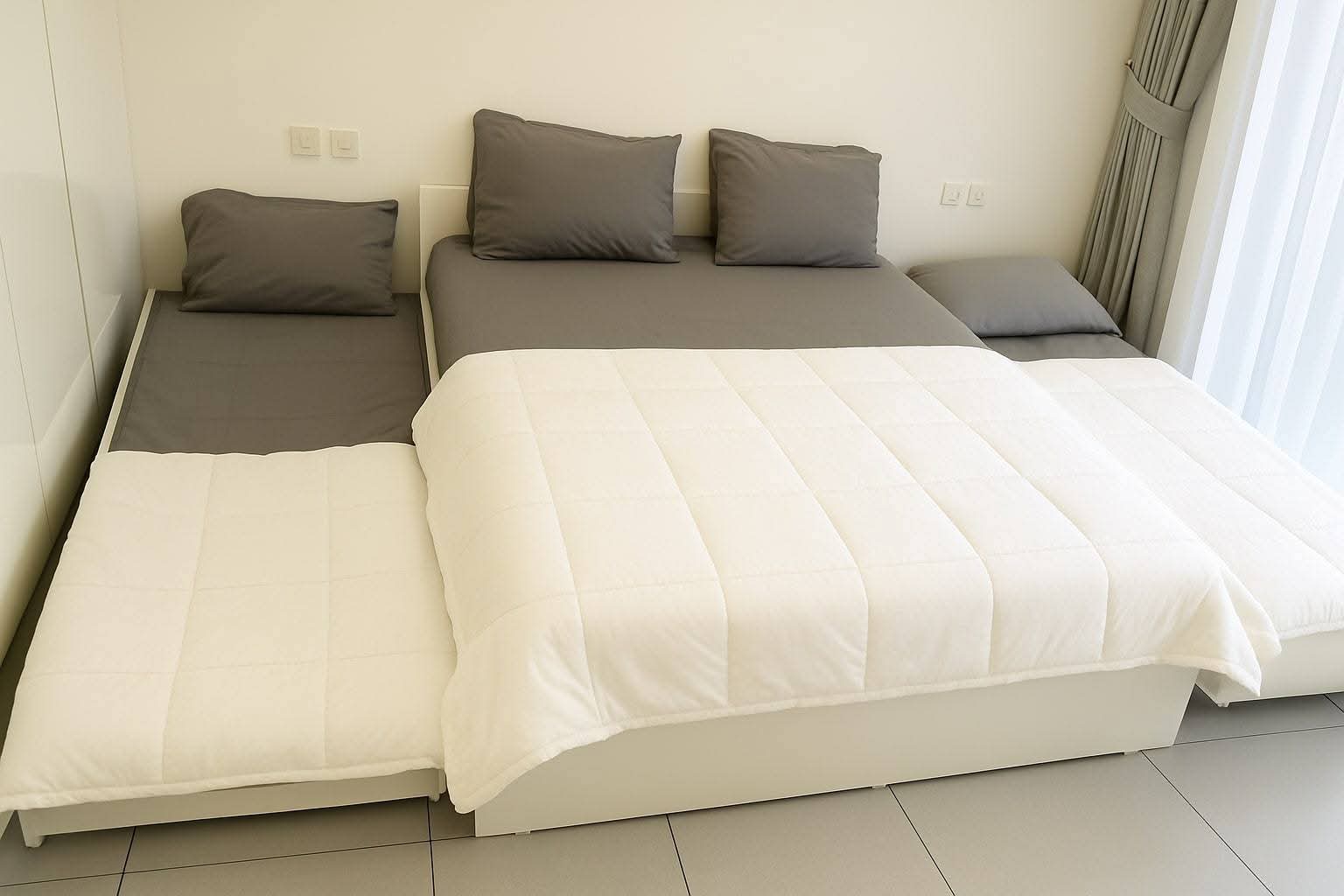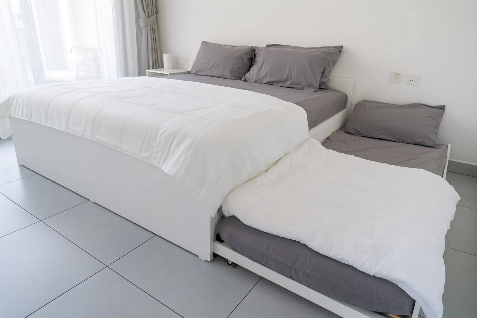 ✔ Master Bedroom sleeps 4 people (1 King Bed+2 trundle Beds + 1 Baby Cot)